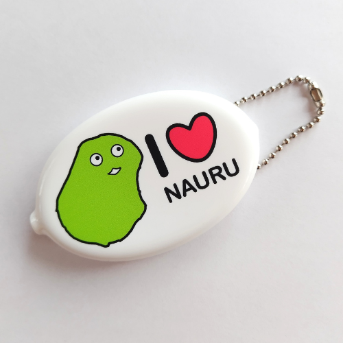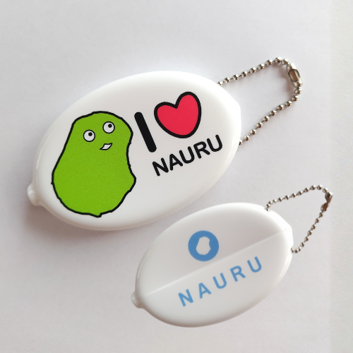 表はナウルくん、裏はナウル共和国観光局のロゴ入りのラバーコインケース。