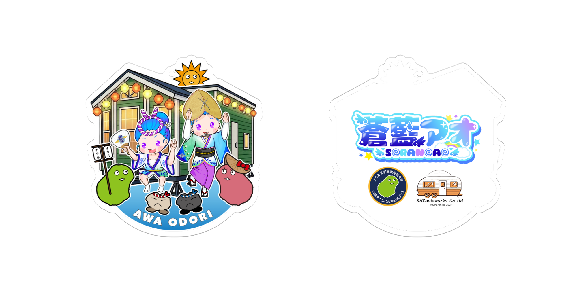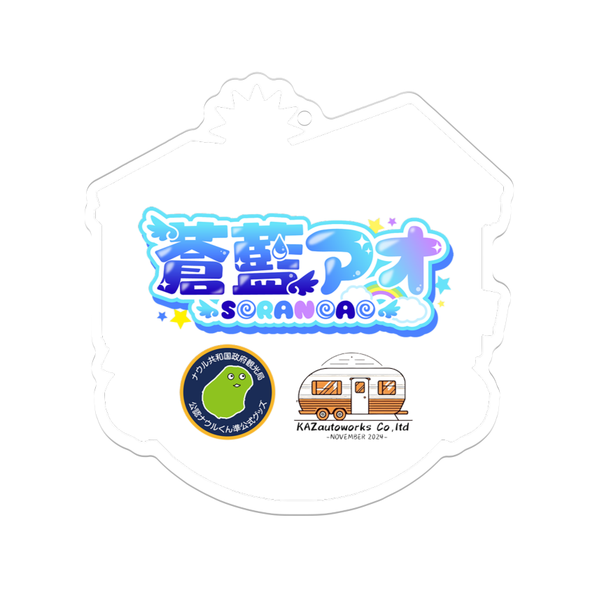 徳島県ご当地VTuber蒼藍アオさんと、ナウルくん、トレーラーハウスがコラボしたアクリルキーホルダーです!